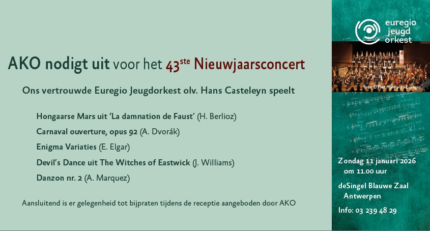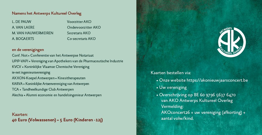 Ook dit jaar nodigt AKO (Antwerps Kultureel Overleg) U uit op zijn Nieuwjaarsconcert